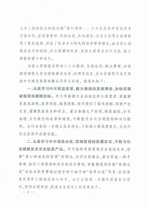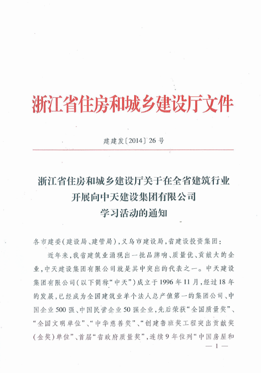 《浙江省住房和城乡建设厅关于在全省建筑行业开展向环球360建设集团有限公司学习活动的通知》